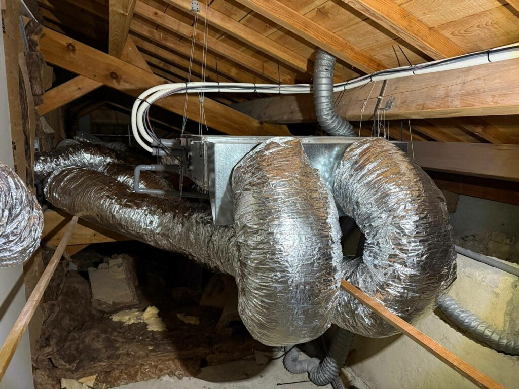 L’installation a commencé par la pose de l’unité extérieure, discrètement positionnée dans la cour intérieure de l’immeuble afin de limiter le bruit et l’impact visuel. Les raccordements frigorifiques et électriques ont été soigneusement intégrés dans des gaines pour préserver l’esthétique intérieure.